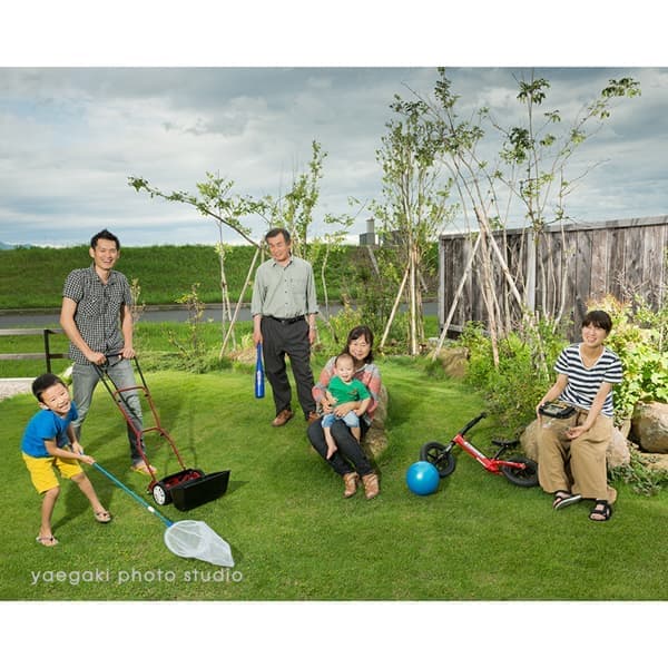 撮影期間が夏休み中ということもあり、3世代や4世代のご家族で集まっていただき賑やかで楽しい撮影会となりました。スイカやプール、それぞれオリジナリティーのある仕上がりになり我々撮影チームも楽しませていただきました。庭や家などの大切なたからものと一緒に撮影することで、大切なモノがそこに存在していた証を残すことができます。